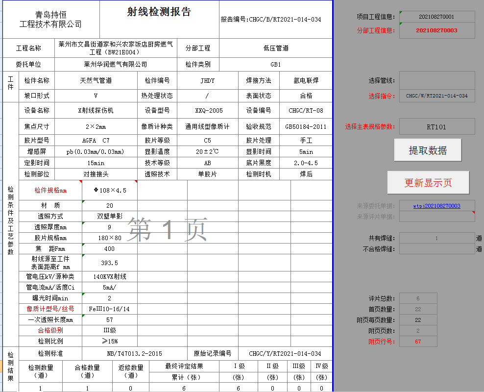 - 1. 结构化的处理数据,最简化的数据录入模式。根据整个报告所用到的数据的特点,把数据区分成三块:检测规格参数;焊口信息;检测结果信息。